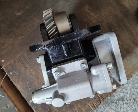 取力器就是一組變速齒輪,又稱功率輸出器,一般是由齒輪箱、離合器組合而成,與變速箱使用齒輪連接,與舉升泵是軸連接,是變速箱里的一個單的檔位,掛上這一檔,一加油門,舉升泵就可以運轉(zhuǎn)了。舉升泵是一個液壓裝置,舉升車箱,實現(xiàn)自卸功能。自卸車、消防車、水泥攪拌車、制冷等需要額外動力的車輛,是通過取力器獲取的,取力器是裝在變速箱外側(cè)的附加裝置(水泥攪拌車的取力器是在離合器外殼上),它從變速箱的某個齒輪獲取動力。這個動力的接通或斷開是通過駕駛室內(nèi)的一個電磁閥來控制的。由取力器帶動高壓油泵供自卸車;帶動水泵供消防車;帶動壓縮機供制冷車;帶動液壓馬達旋轉(zhuǎn)攪拌罐。
